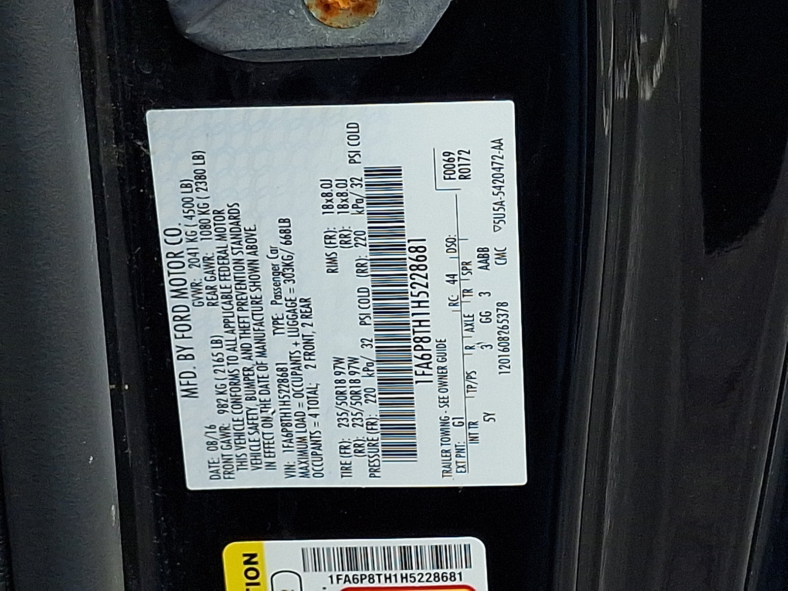 - Vehicle Name: Ford Mustang